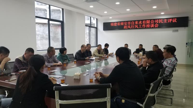 為切實(shí)提升公司服務(wù)質(zhì)量,確保供水水質(zhì)安全,進(jìn)一步推動(dòng)政風(fēng)行風(fēng)工作的深入開展,公司于12月26日下午在二樓會(huì)議室召開民主評(píng)議政風(fēng)行風(fēng)座談會(huì)。會(huì)議由吳朝陽(yáng)經(jīng)理主持,公司領(lǐng)導(dǎo)班子成員及11名行評(píng)代表參加座談會(huì)。