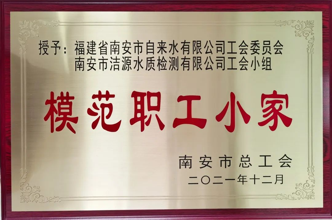 南安市潔源水質(zhì)檢測(cè)有限公司工會(huì)小組獲“南安市模范職工小家”榮譽(yù)稱號(hào)
